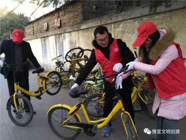 志愿者們冒著寒風(fēng)和低溫,清理家屬院里違規(guī)停放小黃車(chē),并引導(dǎo)社區(qū)居民講文明、樹(shù)新風(fēng),養(yǎng)成良好的行為習(xí)慣。經(jīng)過(guò)一個(gè)多小時(shí)的勞動(dòng),雖然手都凍紅了,但看到近百輛擺放的整整齊齊的單車(chē)和井然有序的院子,大家都有滿滿的成就感,也體會(huì)到了奉獻(xiàn)的快樂(lè)。